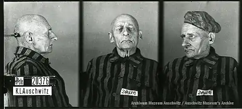 - ↑ Księga kostnicy była prowadzona przez Stanisława Ryszlera (nr obozowy 16439), kapo komanda nosicieli zwłok (niem. Leichenträgerów). Znosili oni do kostnicy, mieszczącej się w piwnicy bloku 28, zwłoki więźniów zmarłych lub zabitych w szpitalu obozowym, rozstrzelanych pod ścianą śmierci, powieszonych na placu apelowym, czy zmarłych w blokach. W księdze kostnicy odnotowano numery prawie 23 000 zmarłych więźniów, których zwłoki składowano w kostnicy przed spaleniem w krematorium. Przed każdym apelem porównywano wpisy w księdze kostnicy z prowadzoną przez kancelarię szpitala księgą śmierci[8].