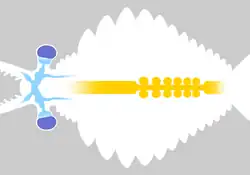 Przy podstawie płetw znajdowały się włókniste struktury, interpretowane jako pęczki mięśni, które mogły wspomagać ruch płetw. W przednim obszarze płetw znajdowały się struktury o długości do 5 mm i szerokości do 2 mm. Były ustawione obok siebie, do 10 lub 11 w rzędzie. Znajdowały się w miejscu, w którym płetwy nachodziły na siebie, mogły więc służyć do połączenia 2 sąsiednich płetw. Mogły być też pomocne w łączeniu płetw z resztą ciała[9].