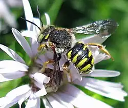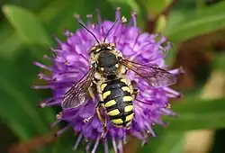 - 1 2 Lucia Liu Severinghaus, Barbara Harris Kurtak, George C. Eickwort, The Reproductive Behavior of Anthidium manicatum (Hymenoptera: Megachilidae) and the Significance of Size for Territorial Males, „Behavioral Ecology and Sociobiology”, 9 (1), 1981, s. 51–58, ISSN 0340-5443, JSTOR: 4599410 [dostęp 2020-01-04].