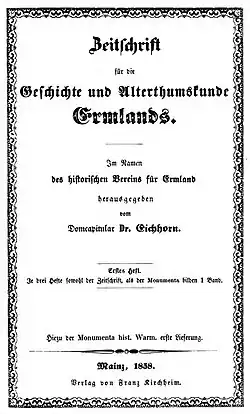 - ↑ Josef Bender, Geschichte der philosophischen und theologischen studien in Ermland: Festschrift des Koenigl. lyceum Hosianum zu Braunsberg zu seiner fuenfzigjaehrigen jubelfeier sowie zur erinnerung an das dreihundertjaehrige bestehen der hosianischen anstalten ueberhaupt, C.A. Heyne, 1868 [dostęp 2018-01-19] (niem.).
