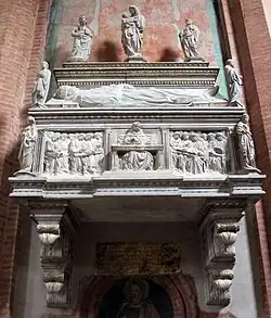 Pochowany został najpierw w kościele San Cristoforo del Balladuro, a następnie w sarkofagu autorstwa Jacopo della Quercia w kościele San Giacomo Maggiore.