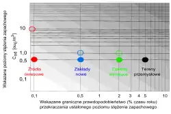 - ↑ Environment. Agency, UK 2002: Technical Guidance Note - Integrated Pollution Prevention and Control; Horizontal Guidance for Odour; IPPC H4 part 1 – Regulation and Permitting (draft 2002). [dostęp 2010-11-01]. (ang.).