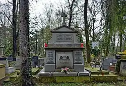 - ↑ Lista osób zasłużonych pochowanych na Cmentarzu Rakowickim (1803–1939). W: Karolina Grodziska–Ożóg: Cmentarz Rakowicki w Krakowie. Kraków: Wydawnictwo Literackie, 1987, s. 111. ISBN 83-08-01428-3.
