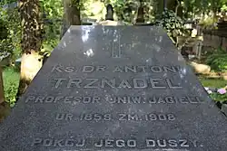 - ↑ Jan Wiktor Tkaczyński (red.), Pro Memoria III. Profesorowie Uniwersytetu Jagiellońskiego spoczywający na cmentarzach Krakowa 1803-2017, Kraków: Wydawnictwo Uniwersytetu Jagiellońskiego, 2018, s. 300, ISBN 978-83-233-4527-5.