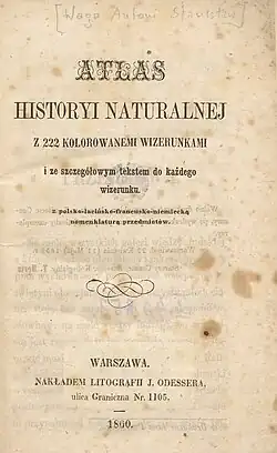 - Atlas do nauki historii naturalnej... objaśniony nomenklaturą polską, łacińską i francuską..., Warszawa 1860
