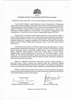 16 stycznia 2023 roku, w stulecie urodzin Antoniny Kaweckiej, przyznano pośmiertnie Nagrodę Związku Artystów Scen Polskich „Gustaw”[11].