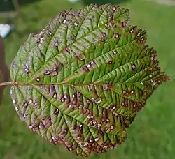 - usuwanie z pobliża plantacji dziko rosnące malin i jeżyn, gdyż mogą one stanowić źródło infekcji[3].