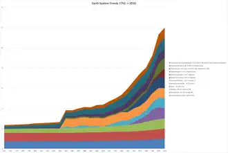 - ↑ Will Steffen, Wendy Broadgate, Lisa Deutsch, Owen Gaffney i inni. The trajectory of the Anthropocene: The Great Acceleration. „The Anthropocene Review”. 2 (1), s. 81–98, 2015-04-01. DOI: 10.1177/2053019614564785. ISSN 2053-0196. [dostęp 2015-09-20]. (ang.).