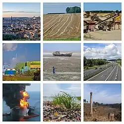 - problem gospodarowania śmieciami – w samej Unii Europejskiej w 2016 roku jeden człowiek średnio wyprodukował niemal 5 ton śmieci[20]. Brak odpowiedzialnej polityki gospodarowania odpadami prowadzi do powstawania takich zjawisk jak Wielka Pacyficzna Plama Śmieci.