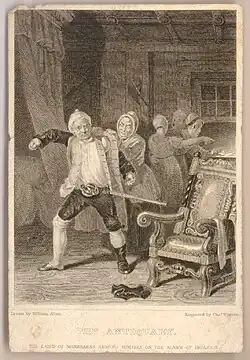 - ↑ Muzeum Sztuk Pięknych w Strasbourgu. Na obrazie obydwie postaci są ubrane w stroje Highlanderów, choć w powieści wszystko wskazuje na to, że są Lowlanderami.