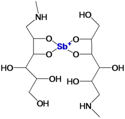 F. Frézard, C. Demicheli, R.R. Ribeiro. Pentavalent antimonials: new perspectives for old drugs. „Molecules”. 14 (7), s. 2317–2336, 2009. DOI: 10.3390/molecules14072317. PMID: 19633606. - ↑ WHO Model List of Essential Medicines 19th List. Światowa Organizacja Zdrowia, 2015. s. 16. [dostęp 2018-06-12]. (ang.).
