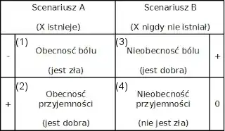 - (3) nieobecność bólu jest dobra nawet wtedy, kiedy nie istnieje ktoś, kto doświadcza tego dobra,