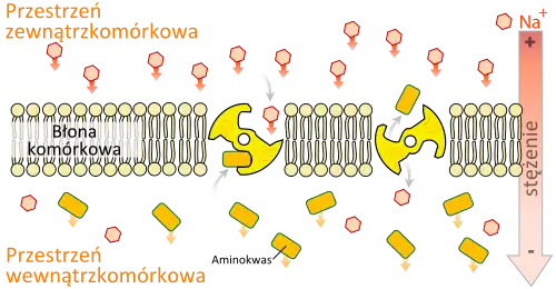 - ↑ Glossary: cotransport. W: Harvey Lodish, Arnold Berk, S. Lawrence Zipursky, Paul Matsudaira, David Baltimore, James Darnell: Molecular Cell Biology. Wyd. 4. New York: W.H. Freeman, 2000. ISBN 0-7167-3136-3. [dostęp 2020-07-29]. (ang.).