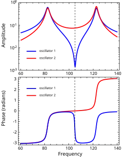 Amplituda drgań masy dodatkowej, drgającej w antyrezonansie z masą główną, wynosi gdzie jest amplitudą siły wymuszającej drgania masy głównej.