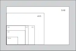 Najczęściej wykorzystywane formaty w tego rodzaju aparatach to: 4×5" (9×12 cm), 5×7" (13×18 cm), 7×9,5" (18×24 cm), 8x10" (20×25 cm). Na poniższym rysunku widnieje porównanie formatów: mały obrazek – 35 mm oraz formaty średnie – 6×4,5 do 6×9 cm i wielkie (w calach).