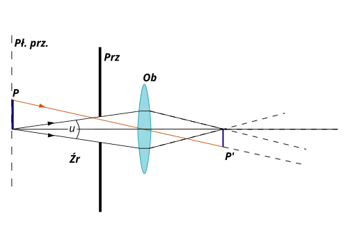 Kąt pod którym widać źrenicę wejściową układu optycznego, patrząc z punktu przecięcia się głównej osi optycznej przyrządu z płaszczyzną, w której znajduje się przedmiot, to kąt apertury.