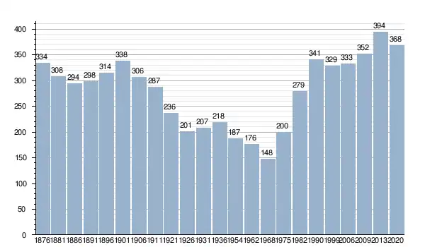 Źródło: Historique des populations communales. insee.fr, 29 grudnia 2022. [dostęp 2023-11-09]. (fr.).