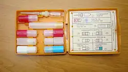 - Gniazdo nr 5. zawiera dwa pojemniki koloru białego, z których każdy zawiera 8 tabletek antybiotyku – tetracykliny o szerokim spektrum działania. Pierwotnie była to chlorotetracyklina, a po roku 1987 wibramicyna.