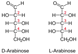 Arabinoza – organiczny związek chemiczny, pięciowęglowy monosacharyd (cukier prosty) zaliczany do aldoz (aldopentoza). W przyrodzie występuje najczęściej w postaci enancjomeru L[4]. Wykazuje czynność optyczną (konfiguracja D(–)). D-Arabinoza jest rzadko spotykana w przyrodzie. Występuje jako składnik niektórych glikozydów. Otrzymuje się ją głównie przez degradację D-glukozy.