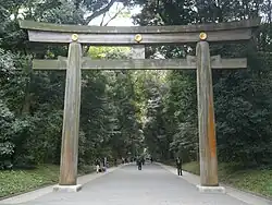 Konstrukcja bramy nazywanej torii jest wyłącznym produktem kultury japońskiej. Ten typ budowli nie istnieje w Chinach ani pobliskiej Korei. Słowo torii oznacza "grzędę lub żerdź dla ptaków" i przypomina scenę z mitologii japońskiej, kiedy zgromadzeni bogowie starali się wywabić boginię słońca Amaterasu z jaskini, gdzie się ukryła. Zaangażowana została więc gromada ptaków z ich długotrwałym śpiewem, który przeistoczył się w wielką symfonię – wezwanie płynące z całej Japonii, skierowane do ich bogini. Tak więc każde torii przed chramem shintō symbolizuje wołanie do jednego z bogów ze strony idących pielgrzymów, a jego przekroczenie oznacza opuszczenie istniejącego świata i przejście w świat boskiej mocy. Do chramów świątyń shintō prowadzi najczęściej długa droga, poprzecinana wieloma, wolno stojącymi bramami zbudowanymi z dwóch pionowych, lekko skośnych słupów i dwóch łączących je u góry belek poziomych, połączonych bez użycia gwoździ. Prawdopodobnie pierwsze bramy były u góry łączone przy pomocy skręconego sznura ściągającego pionowe słupy. Rozwój torii datuje się od okresu Heian (795–1185).