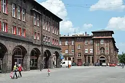 - Stary dworzec kolejowy (ul. Dworcowa 2-10 / ul. św. Jana 20) – oddany do użytku w 1859 roku wraz z oddaniem linii łączącej Katowice z Koleją Warszawsko-Wiedeńską przez Sosnowiec; był to największy obiekt w Katowicach przed nadaniem mu praw miejskich; pierwotnie składał się z hali dworcowej i biur spedycyjnych[45]; rozbudowany w 1906 roku[28],