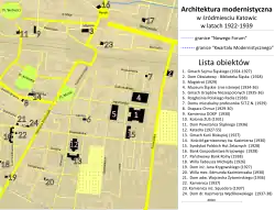 Do zabytków przedwojennej architektury ówczesnych Katowic zaliczają się m.in.: