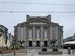 - Budynek Teatru Śląskiego (Rynek 2) – wybudowany w latach 1906–1907 według projektu Carla Moritza w stylu neoklasycyzmu[33]; składa się z trójczłonowej bryły złożonej z kubicznego bloku z westybulem i klatką schodową, podkowiastej widowni z galeriami oraz powstałym przez zestawienie dwóch prostopadłościennych brył blokiem sceny; elewację opięto lizenami, których wertykalizm zrównoważono płycinami podokiennymi[34],