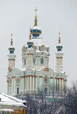 Od upadku w XII wieku Kijów i ziemie ukrainne nie odgrywały żadnej decydującej roli w sztuce ruskiej. Dawne, wielkie świątynie kijowskie uległy jeszcze przed najazdem tatarskim zaniedbaniu, następnie popadły w ruinę i były opuszczane przez duchowieństwo. Do wskrzeszenia życia artystycznego na Ukrainie doszło od lat 40. XVII wieku w związku z działalnością metropolity Piotra Mohyły, Bohdana Chmielnickiego i Iwana Mazepy. Uformowany w połowie XVII wieku barok ukraiński wynikał poniekąd z prób nawiązania do tradycyjnej, prawosławnej sztuki ruskiej, jednak w znacznej mierze ulegał wpływom architektury zachodniej. Barok kozacki był rozwijany na terytorium Rosji od zawarcia ugody perejasławskiej (1654), głównie na terenach osadnictwa kozackiego, przede wszystkim w Małorosji i sąsiednich krainach, na Syberii i okazjonalnie w wielkich miastach, np. Moskwie. W stylu baroku kozackiego nie powstało wprawdzie żadne dzieło o przełomowym znaczeniu artystycznym, wywarł on jednak istotny wpływ na architekturę Moskwy i barok moskiewski, gdzie powstał szereg budynków znacznie oryginalniejszych[2].