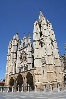 - katedra w León, budowana od ok. 1254 r. (fundamenty absydy są nieco starsze) na wzór katedr francuskich z Amiens i Reims. Od strony zachodniej fasadę z trzema portalami flankują dwie wieże. Środkowy portal dzieli filar z rzeźbą Białej Madonny z 1270 r. Prezbiterium otacza wieniec pięciobocznych kaplic. Najcenniejszy jest zespół witraży o łącznej powierzchni ok. 1200 m² (najstarsze z nich zachowały się w rozecie fasady).