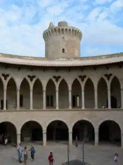 - królewski zamek Bellver w Palmie de Mallorca zaprojektowany przez Pere Silva z pomieszczeniami mieszkalnymi zlokalizowanymi wokół kolistego, wewnętrznego dziedzińca. W sąsiadującej z apartamentami królewskimi, także cylindrycznej wieży, umieszczono pomieszczenia dla strażników.