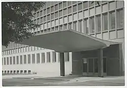 - Gmach Wydziału Wodociągów i Kanalizacji na rogu ul. Narutowicza i Lindleya, dawn. rektorat Uniwersytetu Łódzkiego (arch. Wiesław Lisowski)[15]