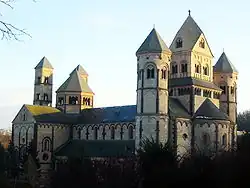 - Lotaryngia – Opactwo w Maria Laach, budowane od 1093 do ok. 1170 (kościół), 1220–1230 dobudowano atrium). Kościół należący do benedyktyńskiego opactwa to trójnawowa bazylika o 6 wieżach: dwie masywne nad skrzyżowaniem naw i cztery smuklejsze przy transepcie zachodnim i absydzie wschodniej. Bryłę budowli przecinają dwa transepty, a nawę główną kończą absydy. Od strony zachodniej kościół poprzedza atrium, w obrębie którego znajduje się absyda bazyliki. Elewacje zdobią arkadkowe fryzy i lizeny.