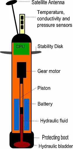 Sondy są tak skonstruowane, że mogą zmieniać swoją wyporność, poprzez zmianę swojej objętości przy stałej masie co zmienia ich gęstość. W systemie Argo większość (w 2008 roku) pomiarów temperatury i zasolenia dokonywanych jest za pomocą Seabird CTD.