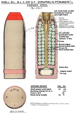 | Nabój Mk. III | pocisk szrapnelowy | kartacz |
