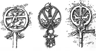 Duże jednostki taktyczne nosiły nazwy od wyobrażonych na ich sztandarach bóstw. Z czasów panowania Sargona II zachował się opis takich jednostek wchodzących w skład armii skierowanej przeciw Babilonii. W porządku marszowym oddziały te szły pod sztandarami bogów: na czele znajdowały się jednostki Nergala i Adada, po nich oddział Isztar, składający się ze straży przybocznej towarzyszącej królowi, a dalej na lewej i prawej flance maszerowały jednostki Sina i Szamasza[8].