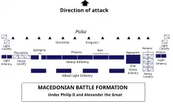Macedoński model armii opierał się na żołnierzach walczących w ściśle zwartym szyku, tworzących falangę, uzupełnianych przez inne, lżejsze oddziały oraz silną konnicę. Taki sposób walki określany jest jako "taktyka połączonych broni" i jego dominację zakończyła dopiera seria porażek, jakie w II wieku p.n.e. poniosły armie hellenistyczne w walce przeciwko rzymskim legionom, m.in. w bitwach takich jak pod Kynoskefalaj w 197 p.n.e., pod Magnezją w 190 p.n.e. czy pod Pydną w 168 p.n.e.