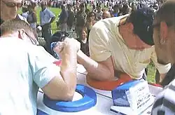 Tradycyjnie walki odbywały się w pozycji siedzącej, z oboma zawodnikami siedzącymi po dwóch stronach stołu przymocowanego do podłoża. Ta forma zawodów wciąż pozostaje najbardziej popularna na całym świecie. W ostatnich latach coraz częściej spotyka się także profesjonalne zawody rozgrywane na stojąco. Startują w nich zarówno kobiety, jak i mężczyźni. Startujący podzieleni są na kategorie wagowe i wiekowe: juniorzy (do 18. roku życia), seniorzy, klasa masters (powyżej 40. roku życia) oraz klasa grand masters (powyżej 50. roku życia). Osobno rozgrywane są mecze prawo- i leworęcznych zawodników.