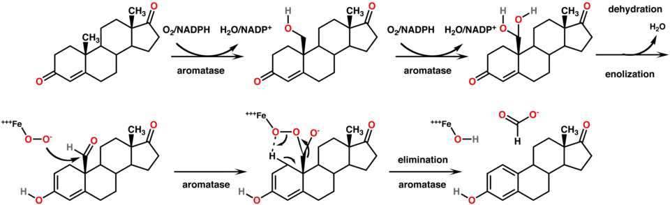 - ↑ R.J. Santen i inni, History of aromatase: saga of an important biological mediator and therapeutic target, „Endocrine Reviews”, 30 (4), 2009, s. 343–375, DOI: 10.1210/er.2008-0016, PMID: 19389994 [dostęp 2022-05-24] (ang.).