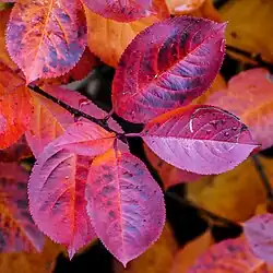 - Naprzemianległe, ciemnozielone, długości do 6 cm. Jesienią pomarańczowe, do czerwonych.