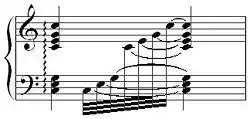 Dźwięki akordu nie są uderzane jednocześnie, lecz dołączane kolejno, w krótkich odstępach, od najniższego do najwyższego. Może być także wykonywany w odwrotnym porządku, jeżeli oznaczanie ma kształt falistej strzałki skierowanej w dół.