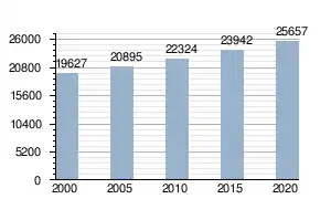 Według danych z 2020 roku miasto zamieszkuje 12 482 kobiet i 13 176 mężczyzn.