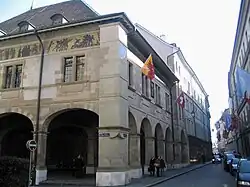 Znajduje się na rogu Rue de l’Hôtel-de-Ville i Rue du Puits Saint-Pierre. Pierwotna, drewniana budowla wzniesiona w tym miejscu pełniła funkcję spichlerza miejskiego, gromadzącego strategiczne zapasy zboża. W roku 1634 zastąpiono ją obecnym murowanym budynkiem. W 1720 r. urządzono tu arsenał miejski, którą to funkcję obiekt pełnił do 1877 r. Później znajdowało się tu m.in. muzeum broni i uzbrojenia, posterunek policji i in. Obecnie, od 1972 r. mieści się genewskie Archiwum Państwowe (fr. Archives d’État de Genève).