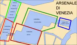 - 1 2 3 TurismoVenezia.it: Arsenale di Venezia. en.turismovenezia.it. [dostęp 2017-07-22]. (ang.).