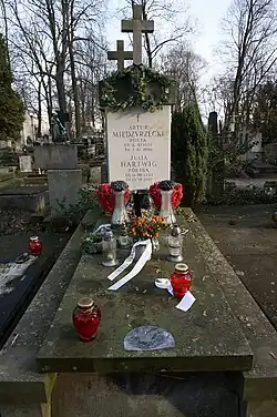 - ↑ Cmentarz Stare Powązki: ARTUR MIĘDZYRZECKI, [w:] Warszawskie Zabytkowe Pomniki Nagrobne [dostęp 2020-01-19].