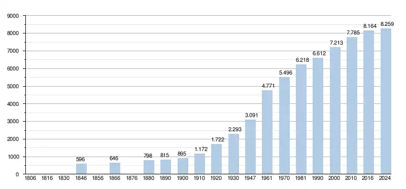 - Źródła:NIS, :od 1806 do 1981= według spisu; od 1990 liczba ludności w dniu 1 stycznia