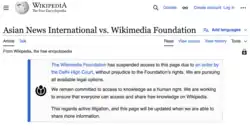 - ↑ Aroon Deep, Wikipedia suspends page on the ongoing defamation lawsuit filed by ANI against Wikimedia Foundation, „The Hindu”, 21 października 2024, ISSN 0971-751X [dostęp 2024-11-10] (ang.).