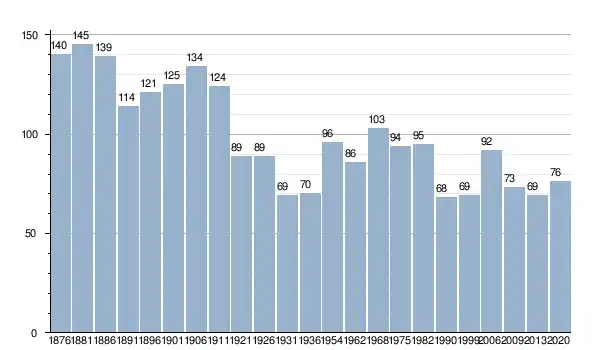 Źródło: Historique des populations communales. insee.fr, 29 grudnia 2022. [dostęp 2023-11-09]. (fr.).