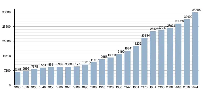 - Źródła: NIS, od 1806 do 1981= według spisu; od 1990 liczba ludności w dniu 1 stycznia