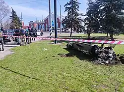 ![]() Pozostałości pocisku rakietowego, na korpusie napis po rosyjsku ЗА ДЕТЕЙ (pol. „za dzieci”) | |