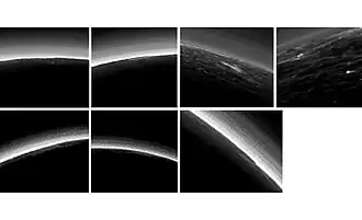 - Nieprzetworzone zdjęcia wykonane przez New Horizons, ukazujące podświetloną przez Słońce atmosferę Plutona: 1, 2, 3, 4.